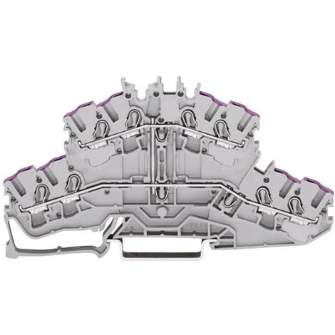 Borne à deux étages pour 4 conducteurs Borne de passage pour 8 conducteurs N sans support de marquage Boîtier bleu avec pontage interne Introduction du conducteur avec impression violette pour applications Ex i