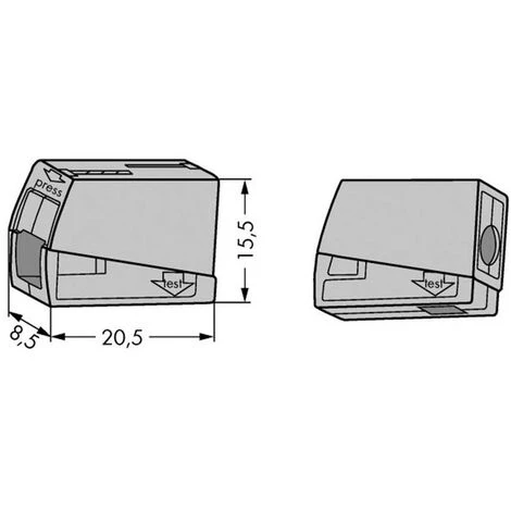 Pour câbles rigides et Ă brins fins. Sur l’un des cĂ´tĂ©s, enfichez le conducteur rigide, appuyez sur la borne et de l’autre cĂ´tĂ©, poussez Ă fond le conducteur flexible.