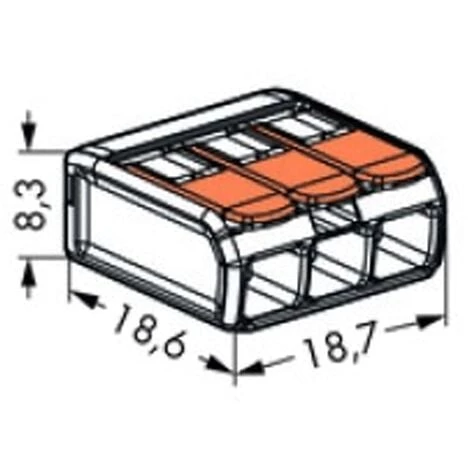Wago, Bornier de connexion transparente avec levier orange série 221 – 3 fils section 0,2 à 4 mm2. La réputation des bornier WAGO n’a d’égal que la facilité d’emploi et la fiabilité qui les caractérisent. Disponibles en 2, 3 et 5 contacts par conditionnements de 10, 25, 50 ou 100 pièces selon les modèles.