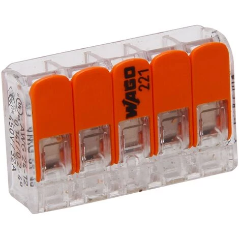 Avec ces connecteurs Wago, vous pouvez rapidement et facilement connecter des fils rigides et/ou avec un fil souple (par exemple, des fils de connexion). Ce connecteur est donc parfaitement adapté pour connecter des projecteurs et des miroirs à l’éclairage. De couleur orange.