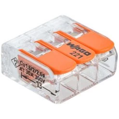 - La borne de connexion Wago S221 est compatible avec tous les conducteurs allant de 0,5 à 6 mm².