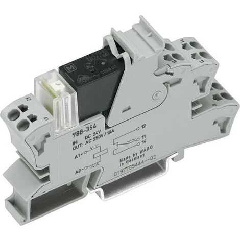 Socle enfichable avec petit relais de commutation et indication de fonctionnement pour montage sur rail TS 35. Branchement via des bornes de ressort de traction.