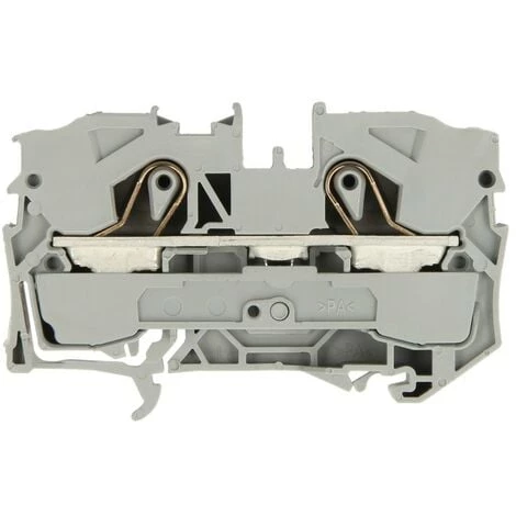 Borne de passage pour deux conducteurs.CaractĂ©ristiques techniques:- raccordement possible: 0,5 – 16 mm² “r+s”- enfichage direct: 2,5- 16 mm² “r” et 2,5 – 10 mm²- embout de câble avec collerette en plastique: 12 mm- 800 V / 8kV / 3 In57A- largeur des bornes: 10 mm
