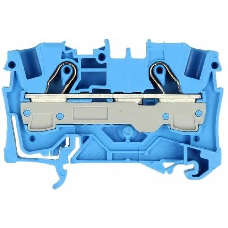 Borne de passage pour deux conducteurs.Caractéristiques techniques:- raccordement possible: 0,5 – 10 mm² “r+s”- enfichage direct: 1,5 – 10 mm² “r” et 1,5 – 6 mm²- embout de câble avec collerette en plastique: 12 mm- 800 V / 8kV / 3 In41A- largeur des bornes: 7,5 mm