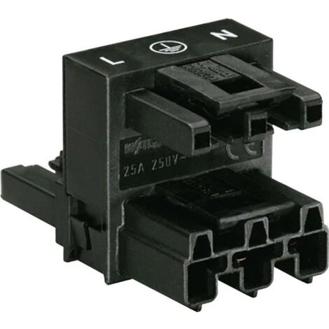 Distributeur en H avec 1 connecteur mâle et 2 connecteurs femelles, 3 pôles, pour « connexions volantes », avec 3ème cliquet de verrouillage, 100% protégé contre l’inversion, enfichable.