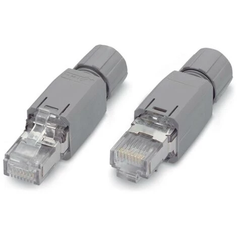 IP20, Ethernet 10/100 Mbit/s, équipement selon le type de bus de terrain.Connecteurs RJ-45 pour une utilisation flexible dans le domaine industriel et le câblage dans les bureaux et le bâtiment. Le connecteur PROFINET RJ-45 se caractérise par une technique de raccordement par perçage d’isolant (IDC), offrant une manipulation simple dans un faible encombrement. La connexion s’effectue sans aucun outil. Le connecteur est compatible avec les standards requis et convient pour le raccordement de câbles rigides et souples. Le connecteur remplit les exigences de la catégorie 5e. Type de connexion: Contact IDC/raccordement par perçage d’isolant, selon 60352-4 Tenue à la tension: (contact – contact) 1000 V, 1 min , (tresse de blindage – contact) 1500 V, 1 min Normes/spécifications: – Norme de base : CEI 60603-7 RJ45 Catégorie 5 – CD ISO/CEI 11801: 2002 – EN 50173: 2002