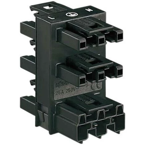 Distributeur avec 1 connecteur mâle et 5 connecteurs femelles, 3 pôles, 100% protégé contre l’inversion, enfichable, 5 raccords.